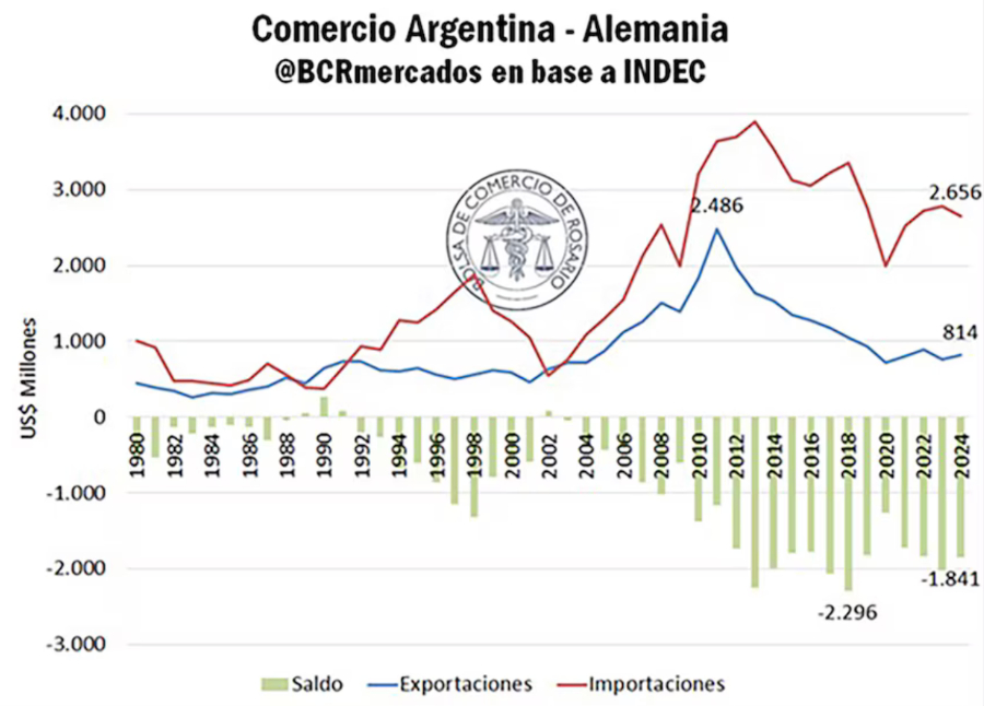 Bei allem Optimismus spricht die Statistik eine klare Sprache: 2024 beliefen sich die argentinischen Exporte nach Deutschland auf 814 Millionen US-Dollar, während die Importe aus Deutschland 2,656 Milliarden US-Dollar erreichten. Das Handelsbilanzdefizit liegt damit bei 1,841 Milliarden US-Dollar – einem der höchsten Werte der letzten zehn Jahre.