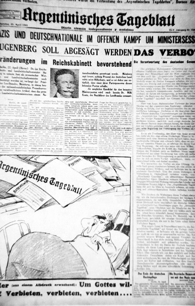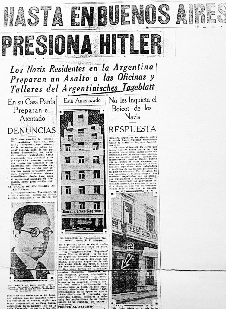 Con su toma de partido contra el nacionalsocialismo, el editor Ernesto Alemann, nieto del fundador Johann, y sus redactores entraron en 1933 en un amargo conflicto con la mayoría de la llamada “colonia alemana”, que en ese momento contaba con unos 250.000 habitantes y que, en su mayoría, se dejó someter sin resistencia bajo la esvástica. Las sucursales de las empresas alemanas boicotearon el diario y los redactores alemanes fueron expulsados del país. Los simpatizantes nazis intentaron silenciarlo con atentados con bombas y agresiones. La embajada alemana en Buenos Aires persiguió a la familia Alemann con juicios e intrigas.