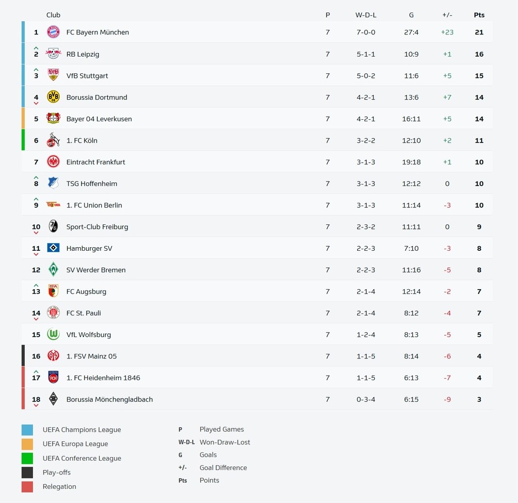 Bundesliga: posiciones tras la fecha 7