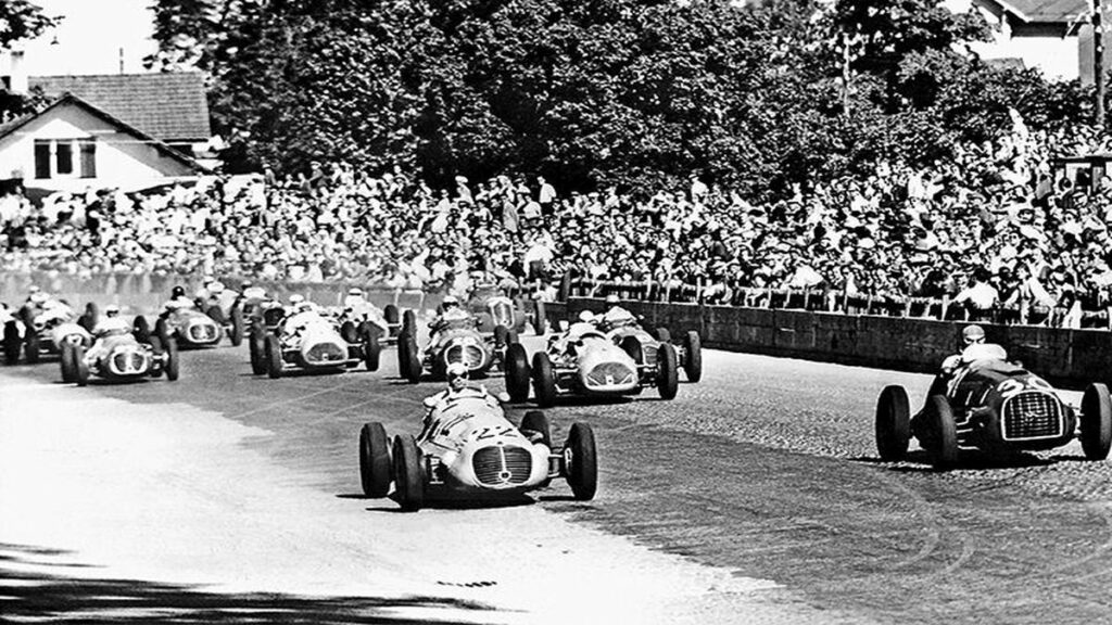Ese mismo año, Suiza formó parte del calendario oficial como sede de la cuarta fecha. Entre 1950 y 1954, el Gran Premio suizo fue una cita habitual del campeonato mundial. El trazado, rodeado de árboles y con curvas de alta velocidad, ganaba reputación como uno de los más difíciles del circuito internacional. Correr allí con lluvia, como muchas veces sucedía, implicaba un riesgo alto incluso para los estándares de la época.