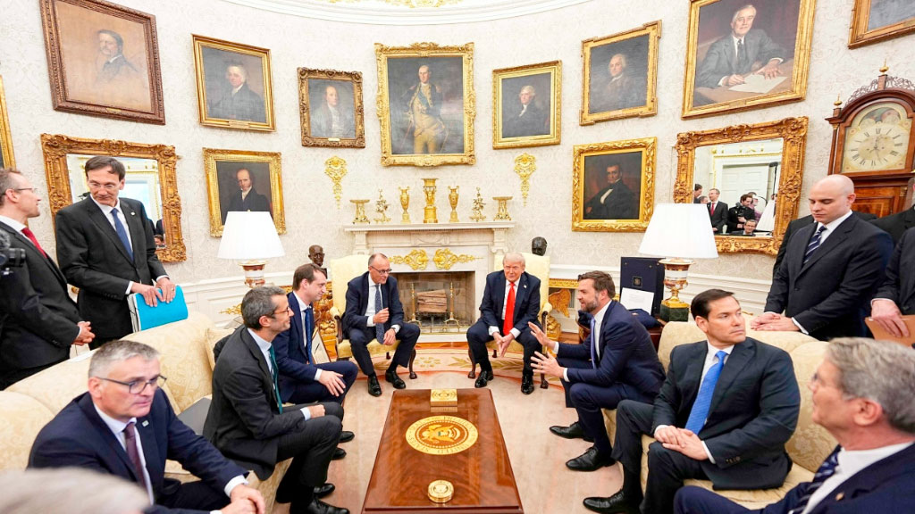 Friedrich Merz se reunió este jueves con Donald Trump en el Salón Oval de la Casa Blanca. Fue su primer encuentro oficial desde que asumió como canciller el pasado 6 de mayo. La reunión, a diferencia de otras que han tenido un tono hostil o con momentos embarazosos, fue marcada por una cautela diplomática que evitó confrontaciones abiertas. Merz, consciente de los antecedentes de Trump con otros mandatarios como Volodimir Zelensky (Ucrania) o Cyril Ramaphosa (Sudáfrica), se mantuvo firme pero evitó entrar en provocaciones.