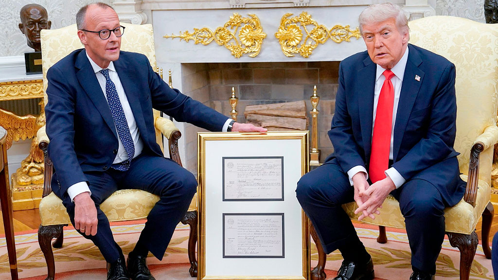 Merz evitó cuidadosamente cualquier tipo de controversia durante su paso por Washington. Regaló a Trump una copia del certificado de nacimiento de su abuelo, Friedrich Trump, nacido en Alemania en 1869, como gesto de cortés diplomacia.