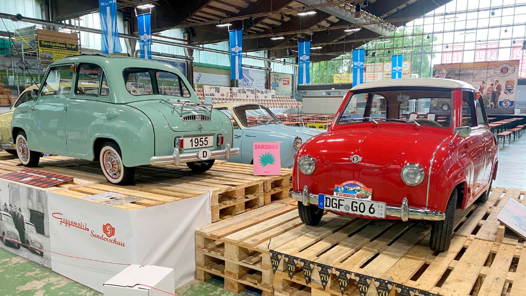 Este fin de semana de Pentecostés, Dingolfing celebra los 70 años del Goggo. En el estadio de hockey sobre hielo, convertido en sede de la muestra especial, se exponen más de 400 vehículos fabricados por Hans Glas GmbH, incluyendo los modelos más raros como el Glas 2600, un deportivo bautizado “Glaserati” o el pick-up postal. La exposición no se limita a los autos: también busca mostrar el estilo de vida de las décadas del 50 y 60 en Alemania.