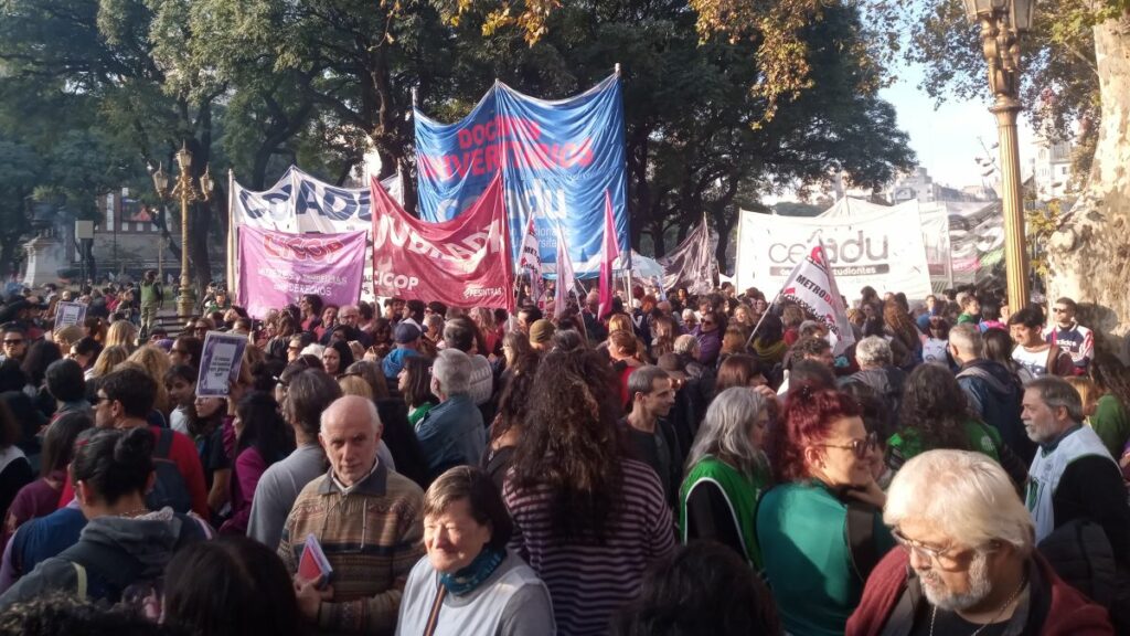 El 4 de junio fue una síntesis del malestar acumulado en distintos sectores. En la plaza se concentraron demandas diversas, pero atravesadas por una crítica común: las consecuencias del ajuste. En términos económicos, el recorte del gasto público en el primer trimestre del año fue del 29% real, con una caída de hasta el 40% en programas sociales, según la Oficina de Presupuesto del Congreso.