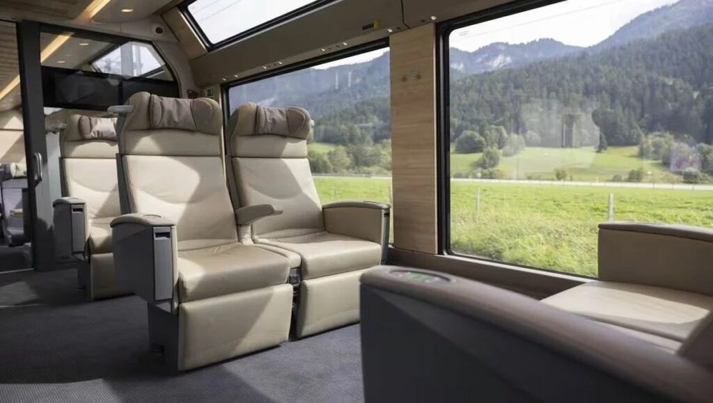Este tren es reconocido por combinar tecnología de última generación con comodidades de alta gama. La clase Prestige ofrece asientos de cuero calefaccionados que giran 180 grados, permitiendo disfrutar del paisaje desde todos los ángulos. Además, el servicio gastronómico incluye tablas de quesos y embutidos locales, ideales para relajarse y saborear la experiencia.