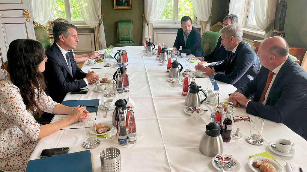 Invitado por la Stiftung Verbundenheit, el gobernador Frigerio mantuvo diversas reuniones institucionales en el marco de su participación en los Tage der Verbundenheit. En Múnich, fue recibido en el Palacio Prinz-Carl por el Ministro de Estado bávaro para Asuntos Europeos e Internacionales, Eric Beißwenger. En el encuentro se abordaron posibles áreas de cooperación en inteligencia artificial, industria farmacéutica, agricultura y educación. También estuvieron presentes Gerónimo Frigerio, Hartmut Koschyk (presidente del Consejo de la Fundación), el Dr. Marco Just Quiles (director general) y Jonas Löffler, líder del equipo para América Latina.