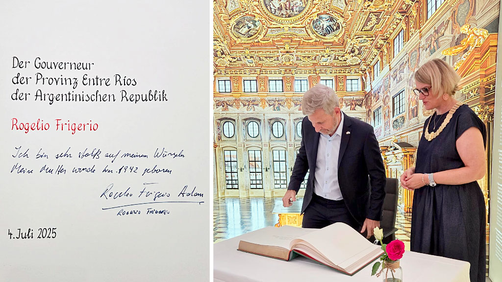 Desde Argentina, participaron el gobernador de Entre Ríos, Rogelio Frigerio, y Cristina Arheit-Zapp, miembro de la comisión directiva de la Federación de Asociaciones Argentino-Germanas (FAAG), institución que representa a una vasta red de asociaciones con raíces germanoparlantes en el país.